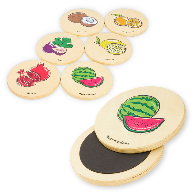 Quadro Educacional Montessori de Madeira Pequeno Dentista - escova de dentes, pasta de dentes, dentes removíveis, espelho, comida, sabores de aprendizagem