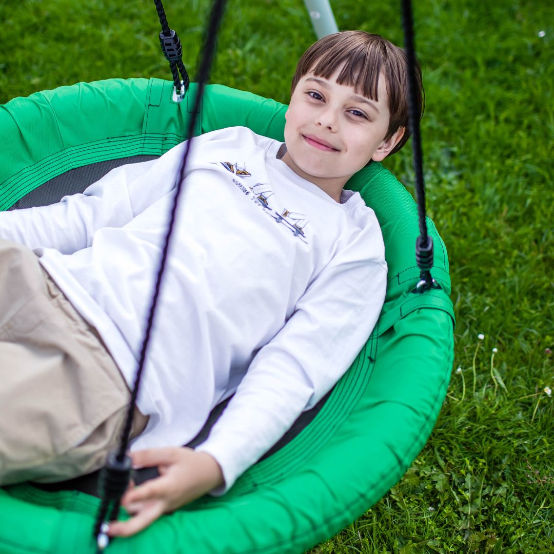 O balanço com ninho de cegonha e assento atende à norma de segurança EN71 , possui superfície lisa e bordas arredondadas. Foi criado com base em elevados padrões de qualidade, garantindo uma utilização longa e segura.