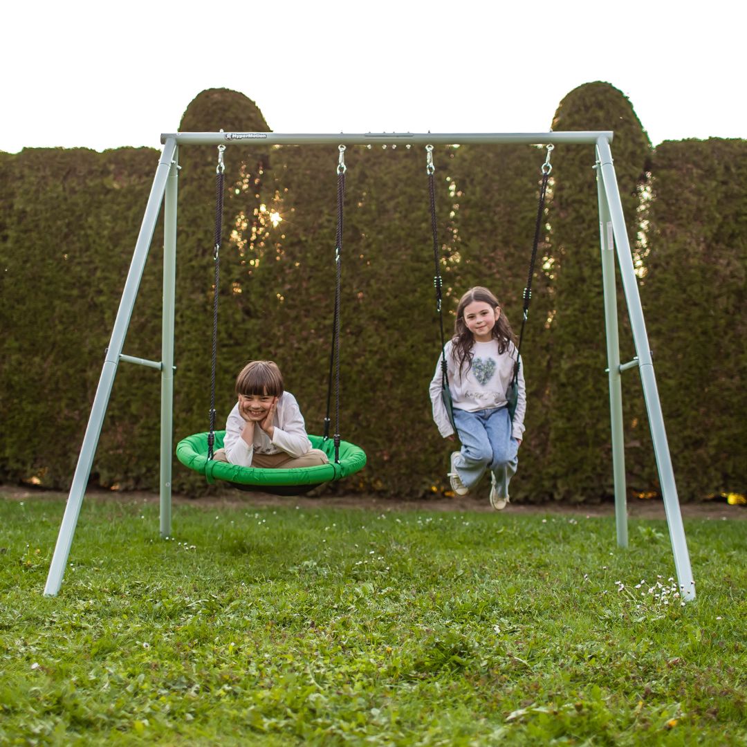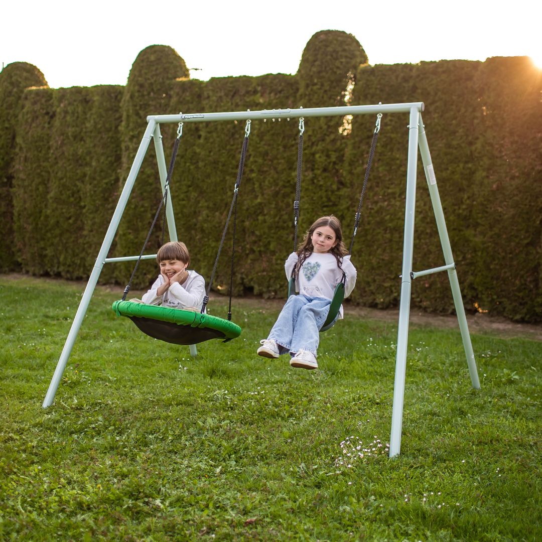 Chamando a atenção pelo seu design moderno, o balanço vai deixar o jardim ainda mais atrativo para as crianças. Graças à possibilidade de instalar um ninho de cegonha e um assento confortável , as crianças podem balançar ao mesmo tempo e participar de brincadeiras conjuntas. O balanço possui uma estrutura extremamente estável e durável , para que você não precise se preocupar com a segurança de seus filhos enquanto balança.