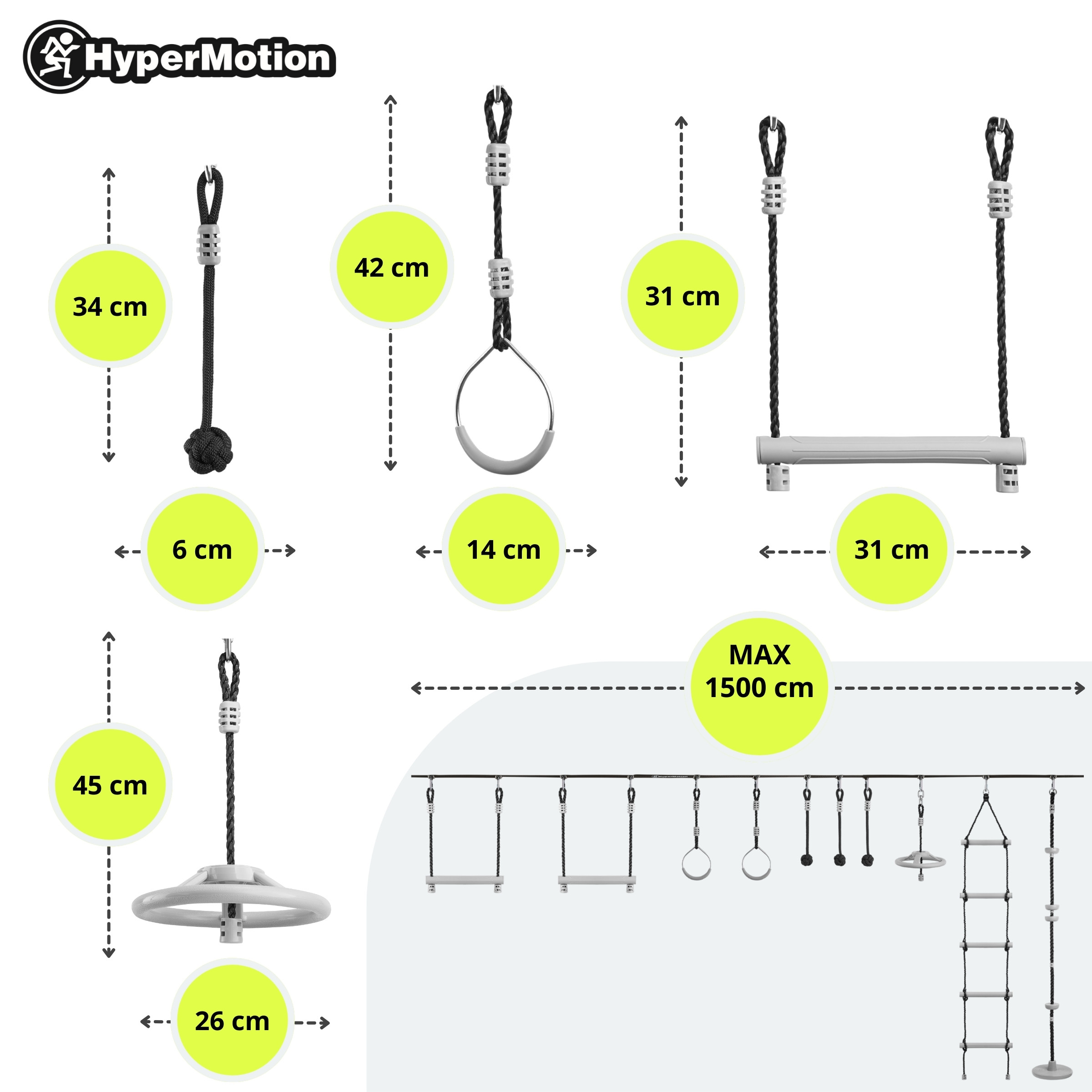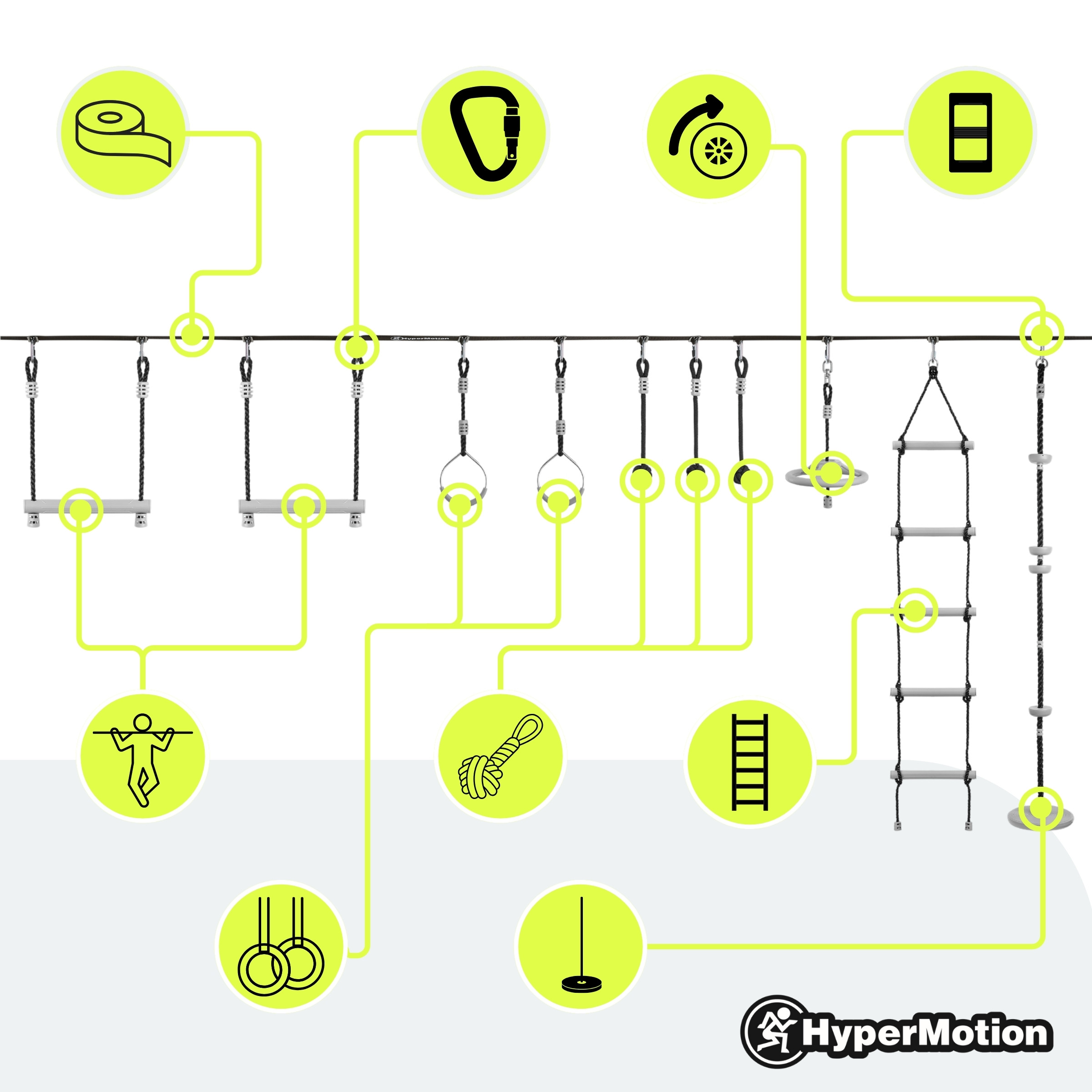 Pista de obstáculos ninja para crianças - Conjunto de slackline HyperMotion - 10 obstáculos
