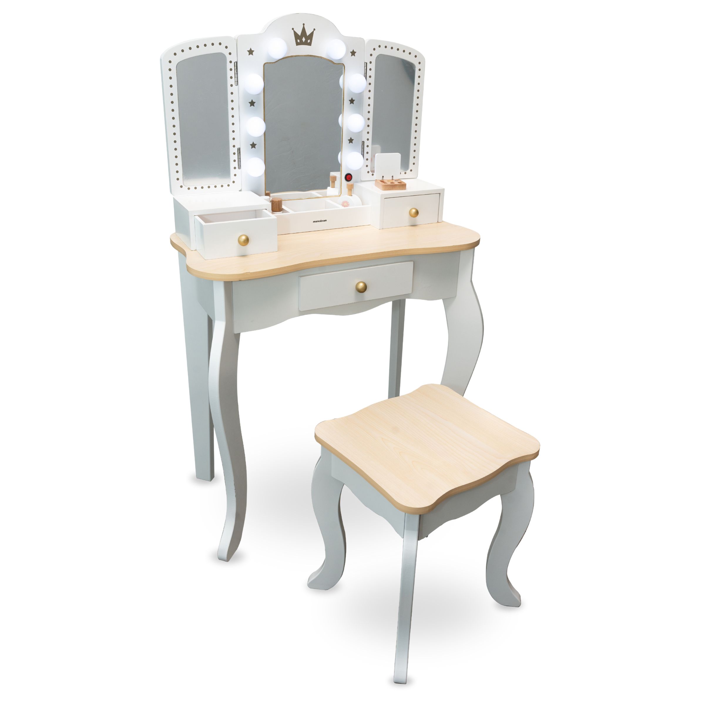 Penteadeira de madeira XXL com banco e iluminação LED para crianças + acessórios