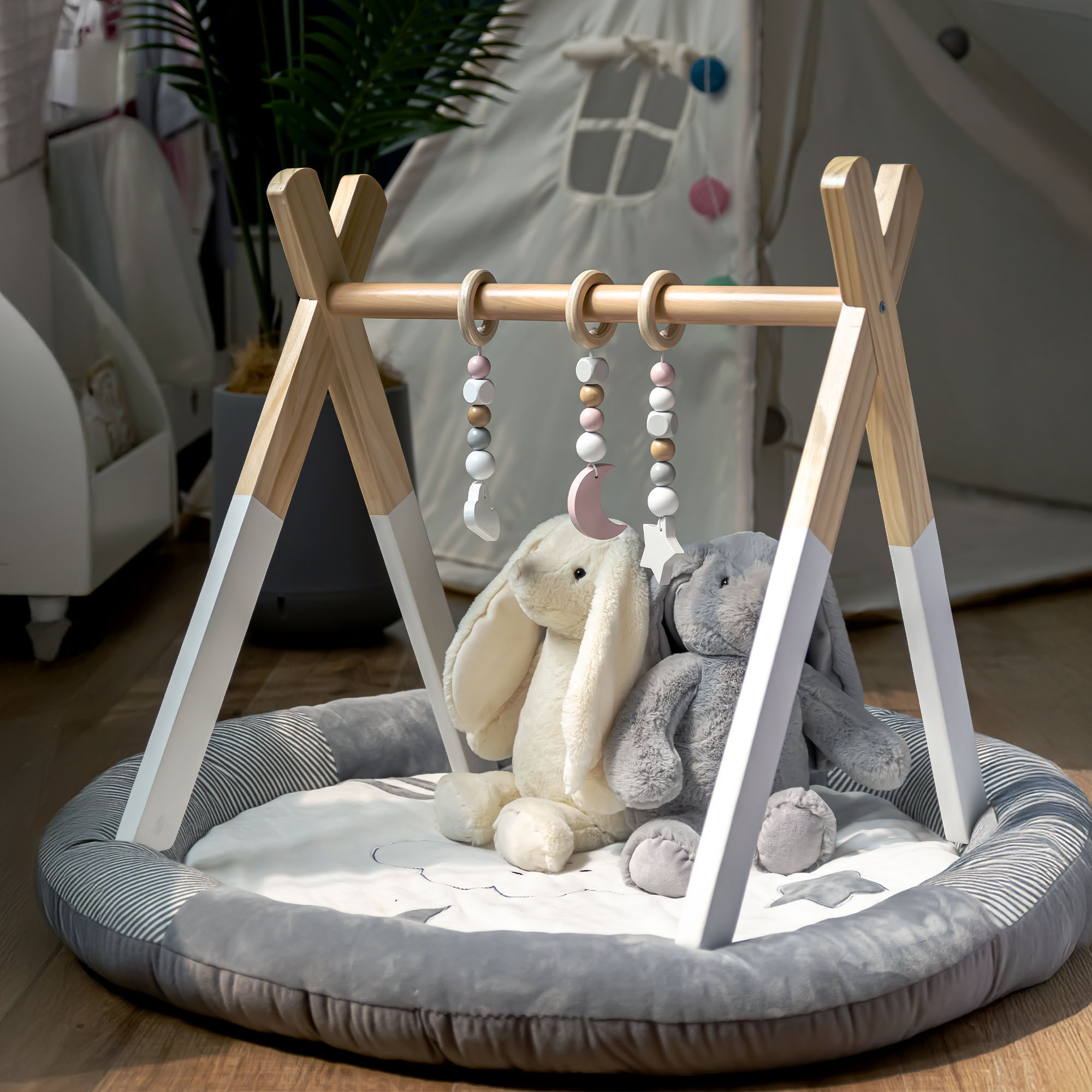 O suporte educativo de madeira Baby Gym é a forma perfeita de tornar as primeiras actividades do seu filho repletas de diversão, movimento e descoberta - apoia o desenvolvimento desde os primeiros dias de vida.