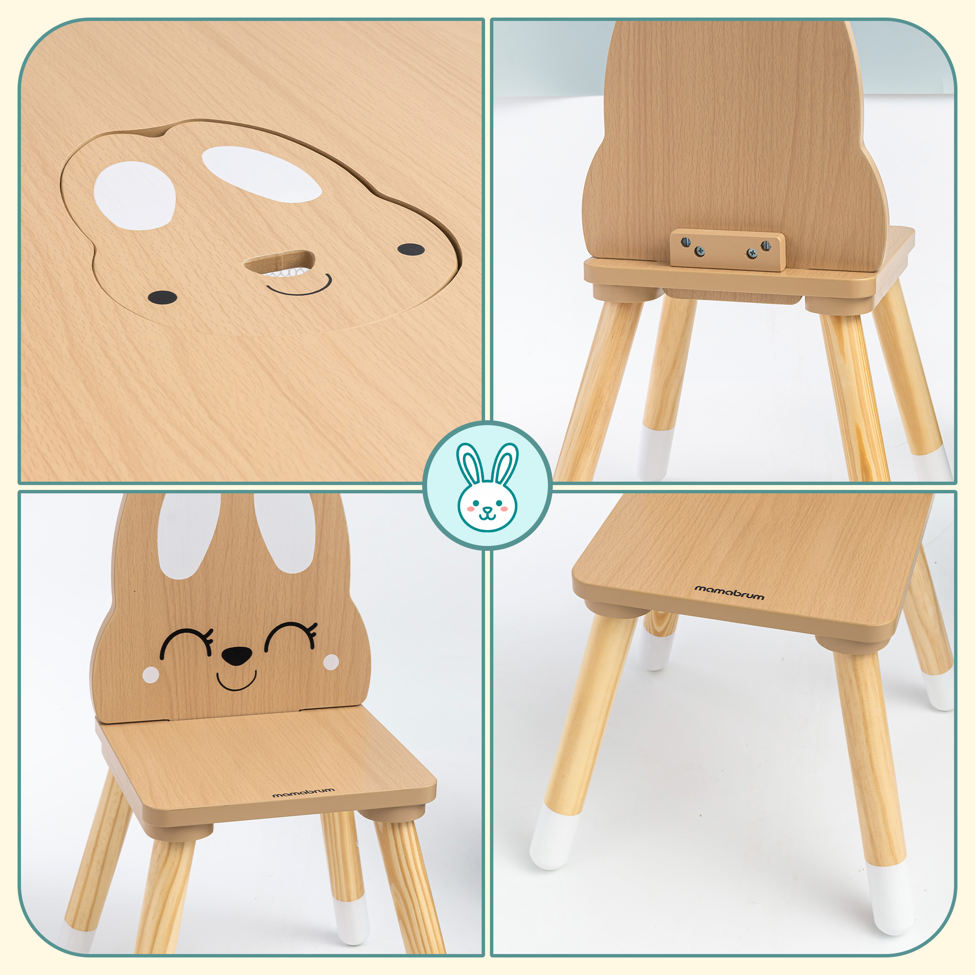 - Design adorável de coelho - encostos de cadeira em formato de orelhas e um tampo de mesa com a imagem de um coelho