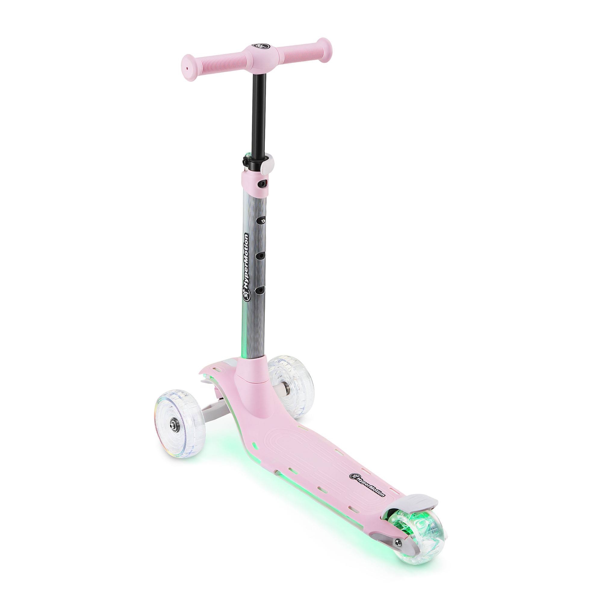 Patinete elétrico de três rodas HyperMotion BECKY com iluminação LED RGB, rosa.
