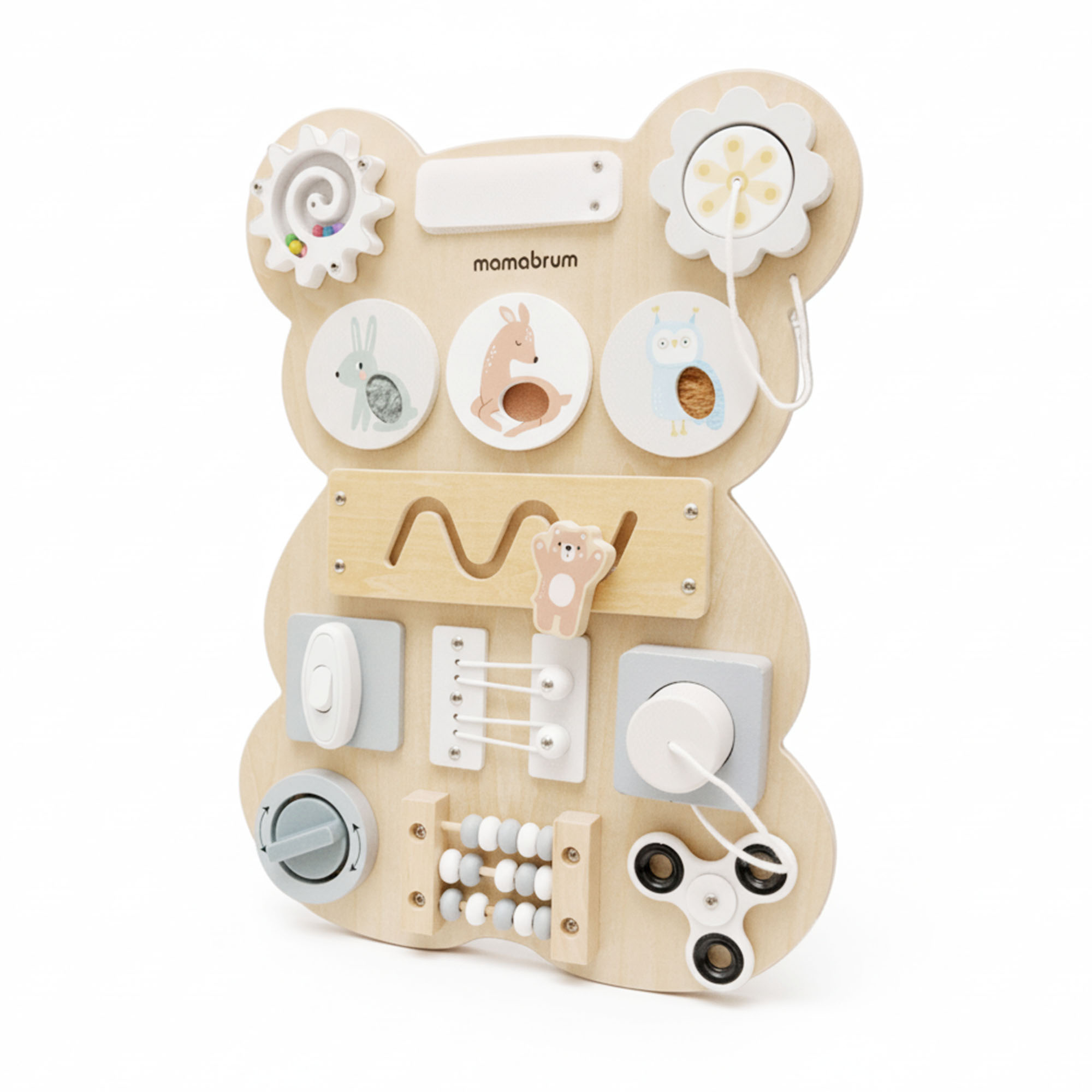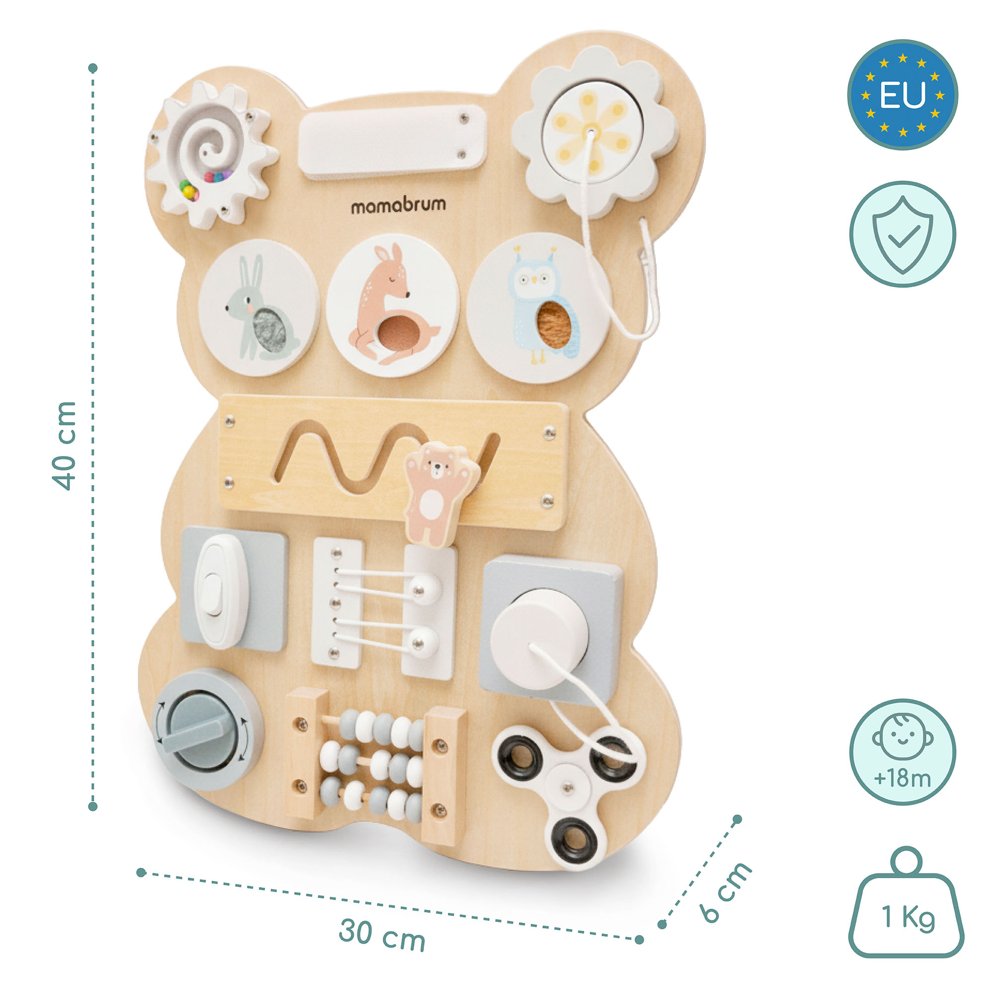 Este tabuleiro de aprendizagem Montessori de madeira, em forma de um adorável ursinho de pelúcia, é perfeito para crianças que adoram explorar o mundo através do tato, do movimento e da experimentação independente. O tabuleiro combina as funções de um brinquedo e de uma ferramenta educativa , apoiando o desenvolvimento infantil de uma forma segura, natural e envolvente.