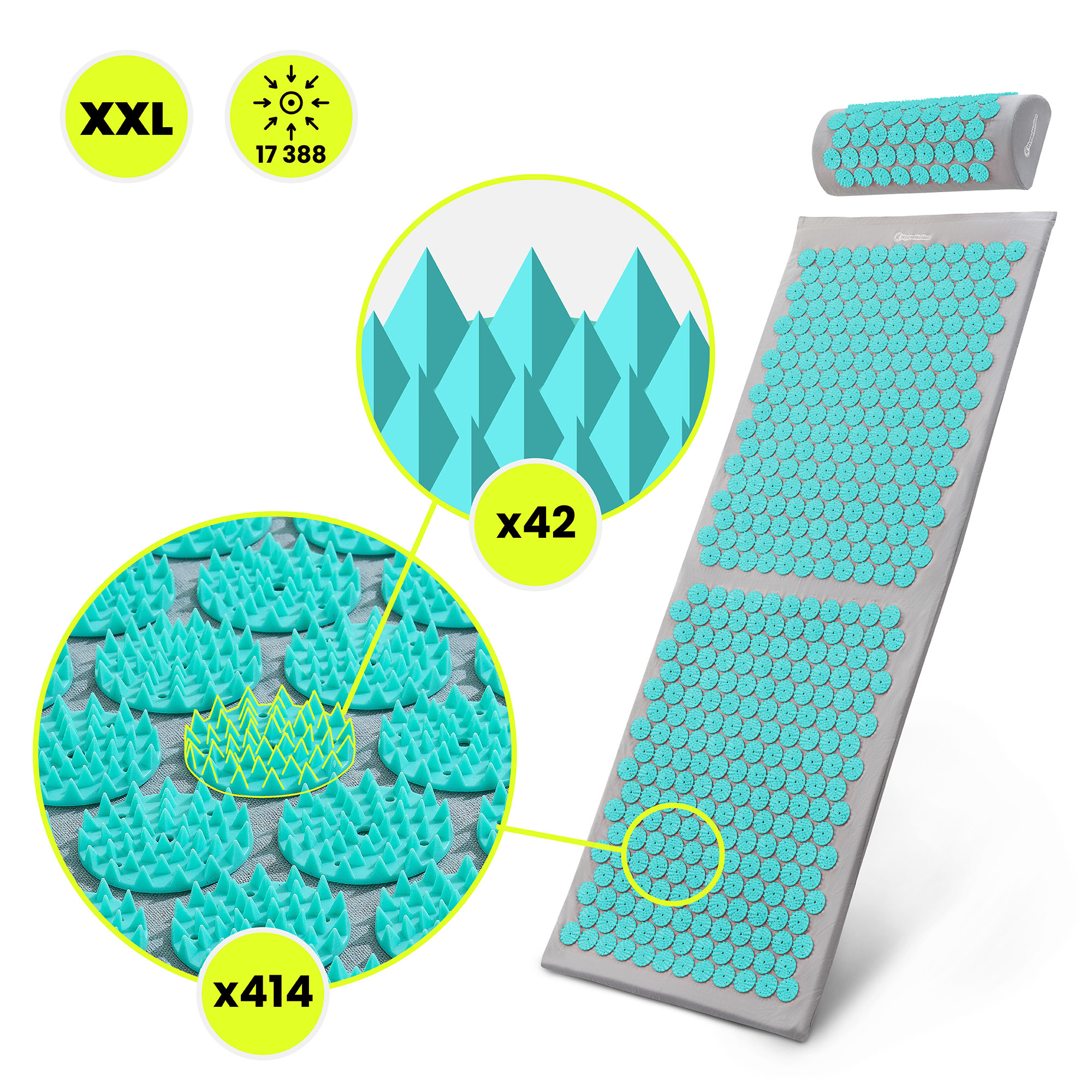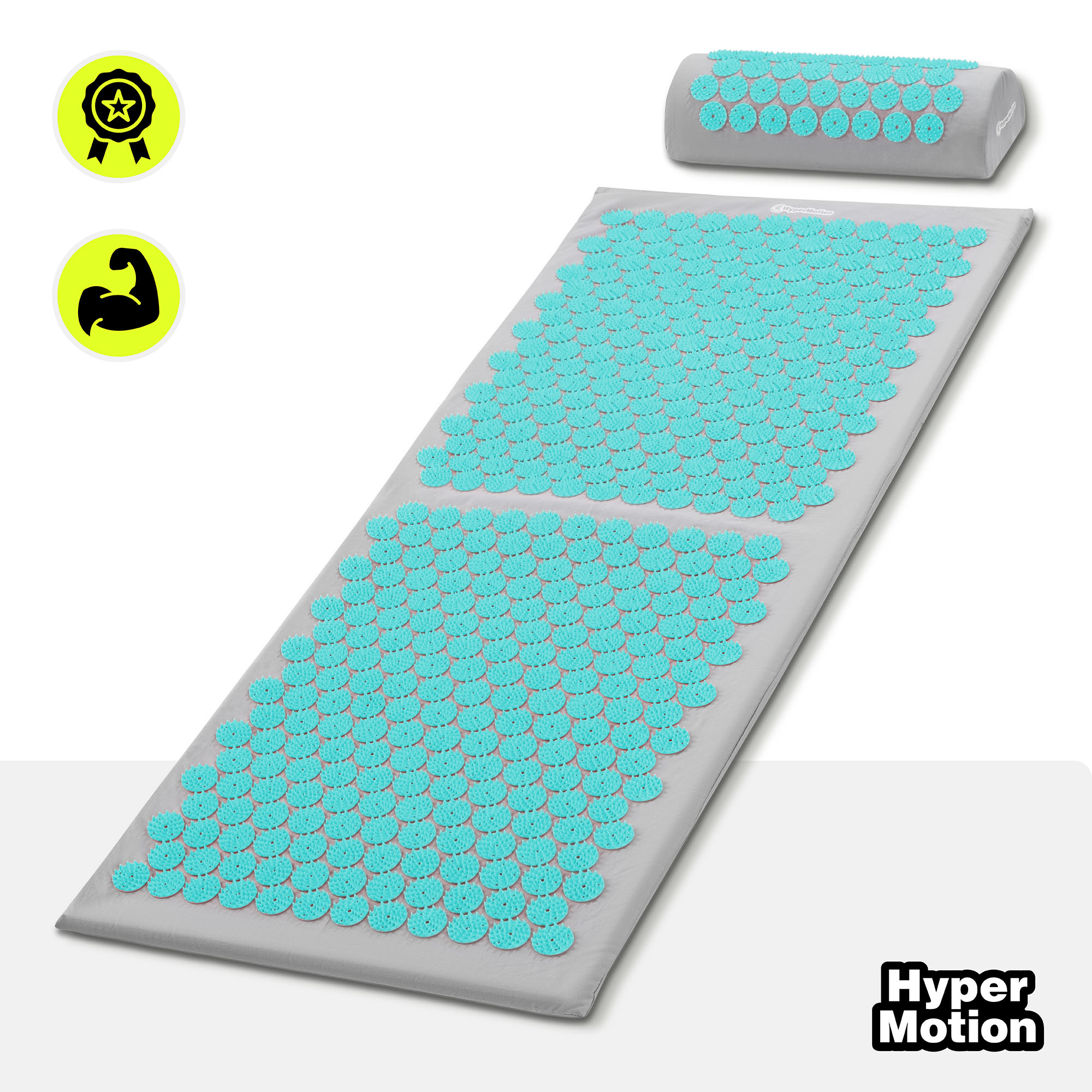 Tapete de acupressão grande com almofada e capa - 130 cm HyperMotion cinza-menta