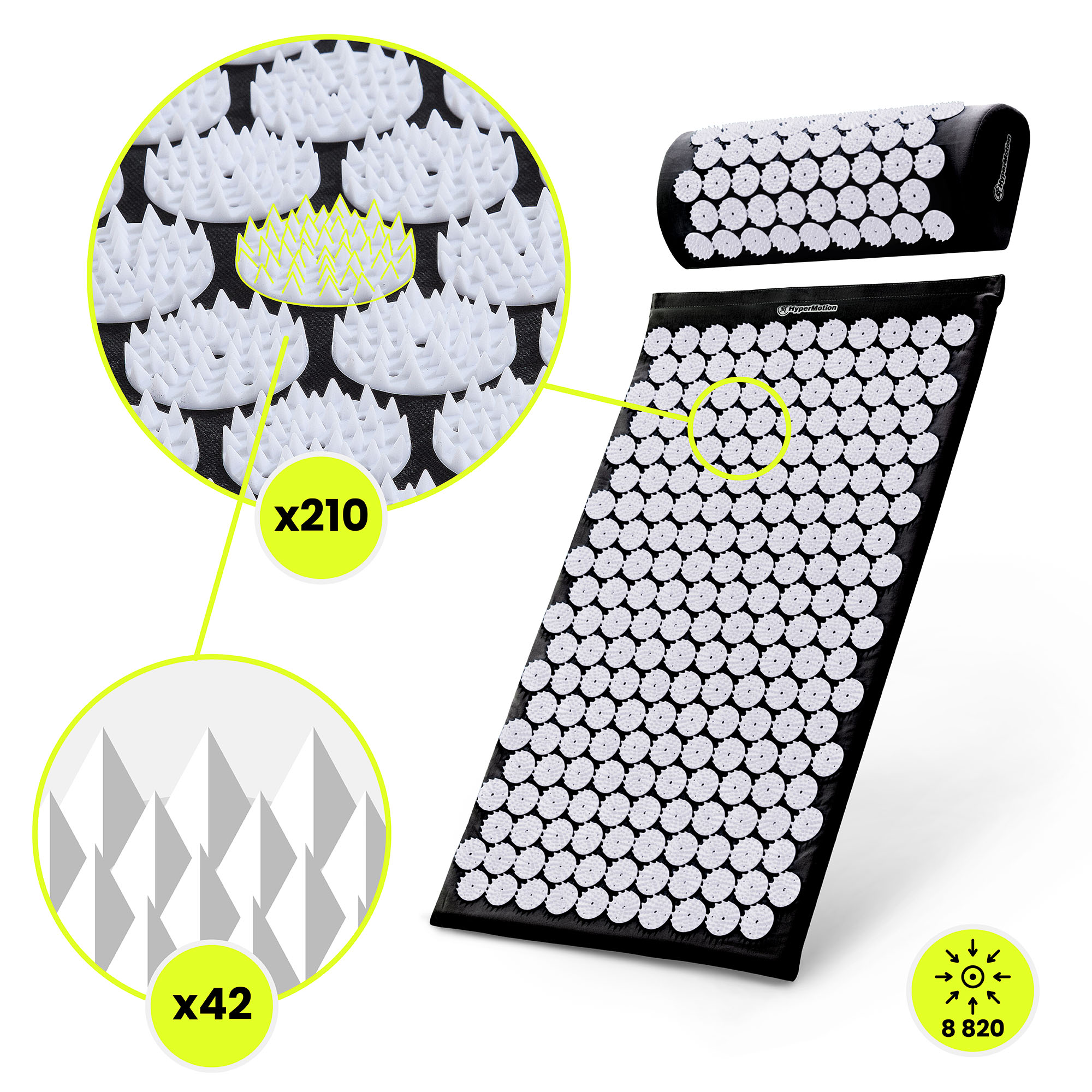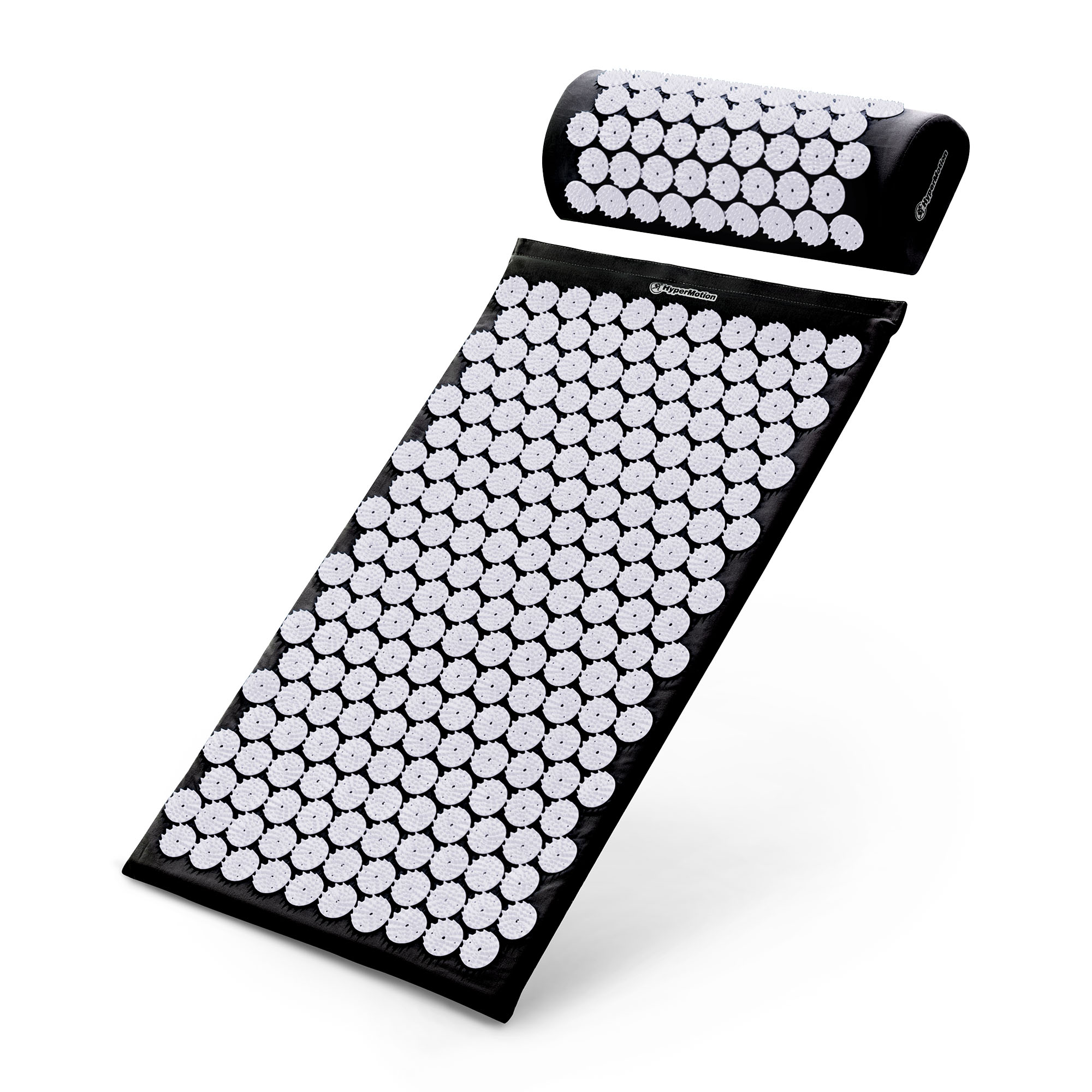 Tapete de acupressão com almofada e capa - 72 cm HyperMotion preto e branco