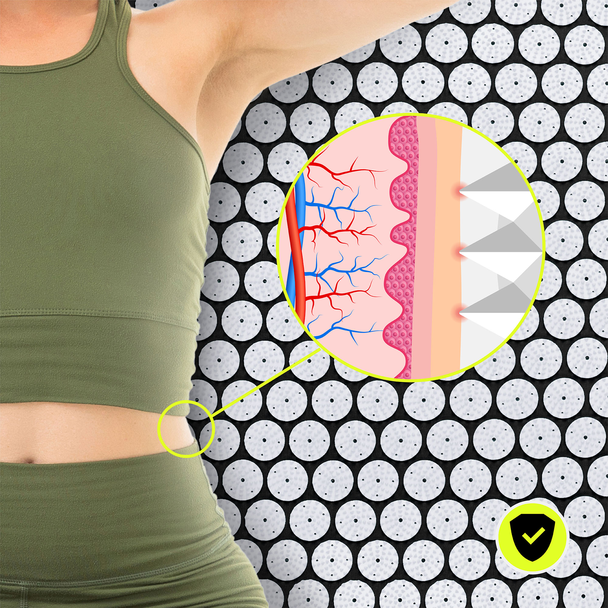 - 8.820 pontos de pressão - 210 rosetas com 42 pontas cada, garantem um impacto uniforme e perceptível em toda a superfície do tapete.