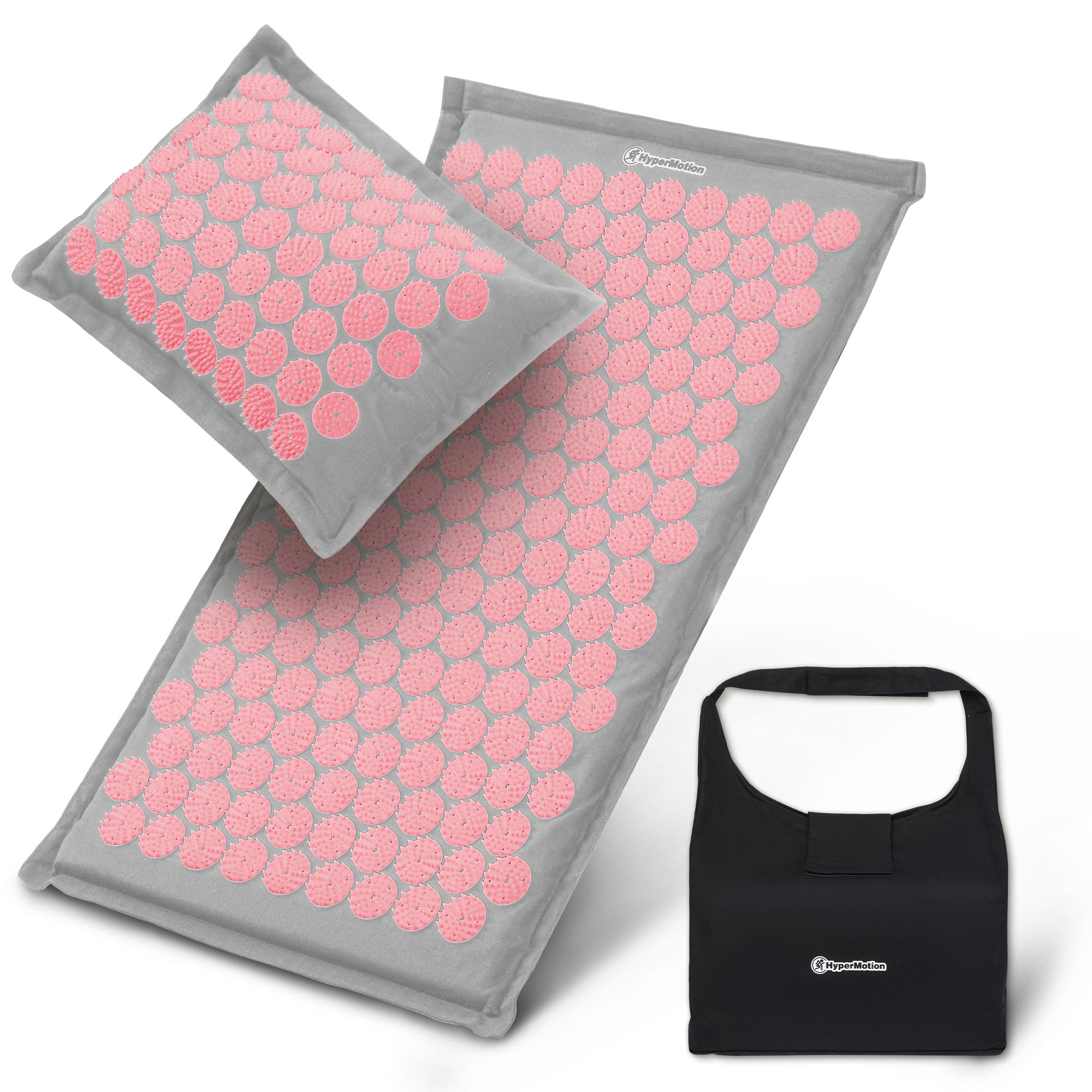 Tapete de acupressão em linho ecológico com fibra de coco e almofada de trigo sarraceno – 68 cm HyperMotion Cinza e Rosa