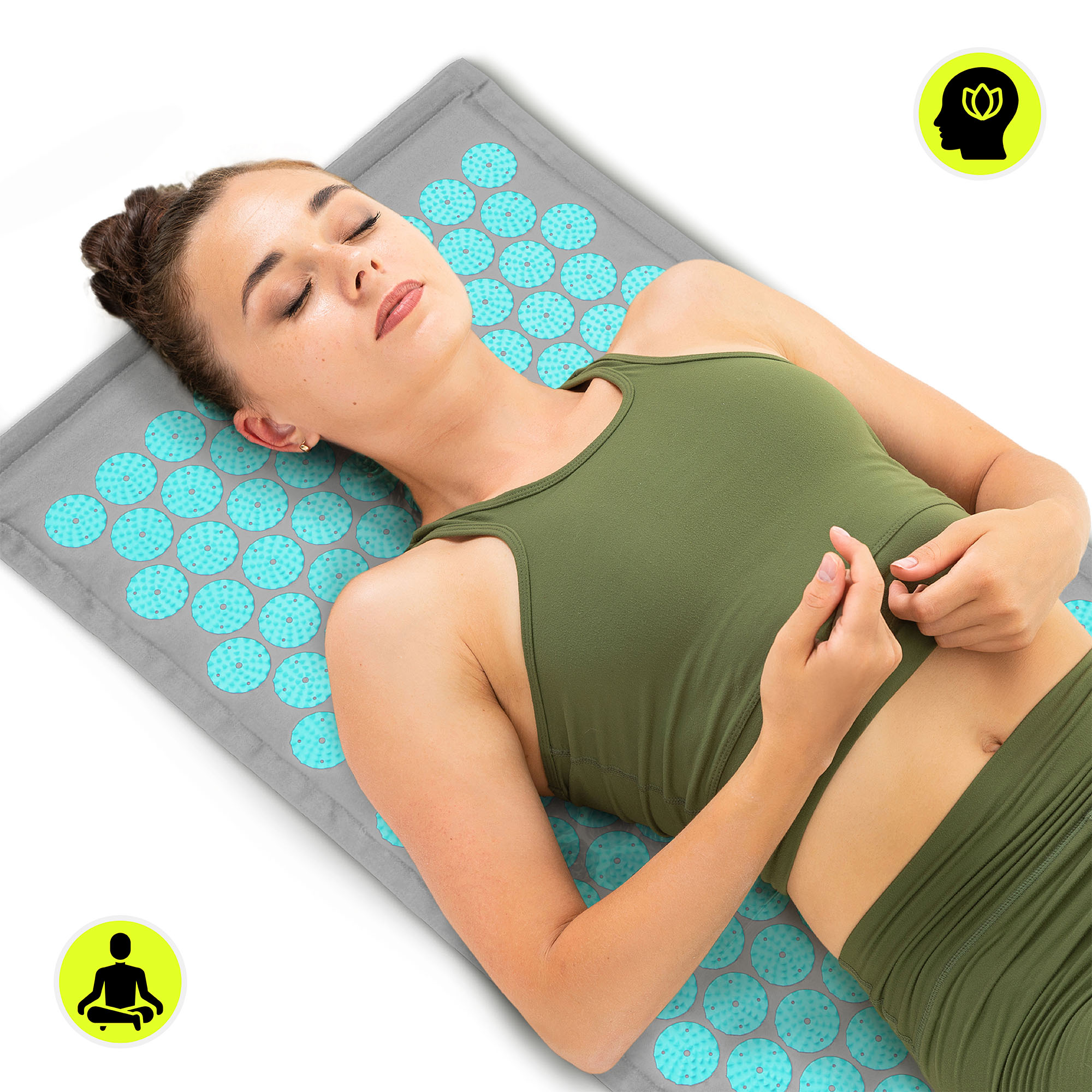 Tapete de acupressão em linho ecológico com fibra de coco e almofada de trigo sarraceno – 68 cm HyperMotion Cinza-Menta