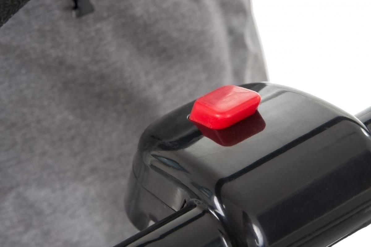 - Uma confortável barra de direção (barra de pressão) com ajuste de altura que permite mudar a direção do deslocamento. O volante da criança e o guiador dos pais estão acoplados - graças a isso, os pais podem controlar a direção da viagem