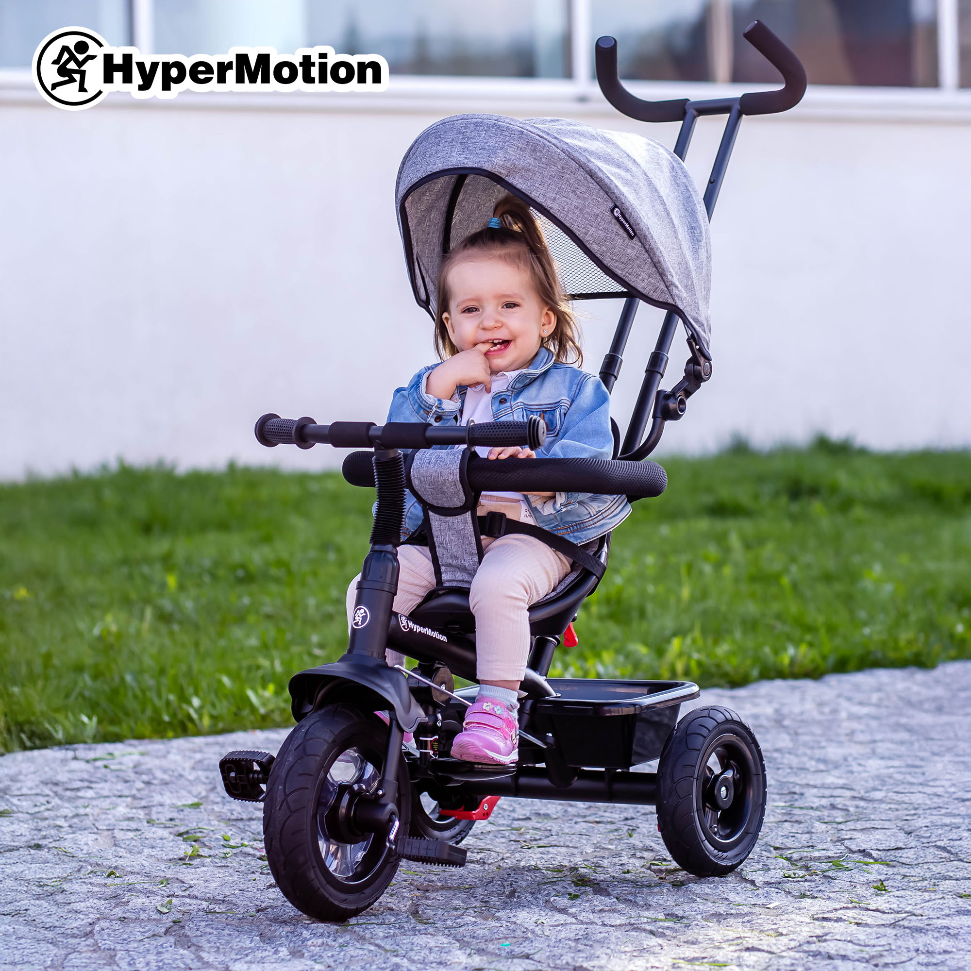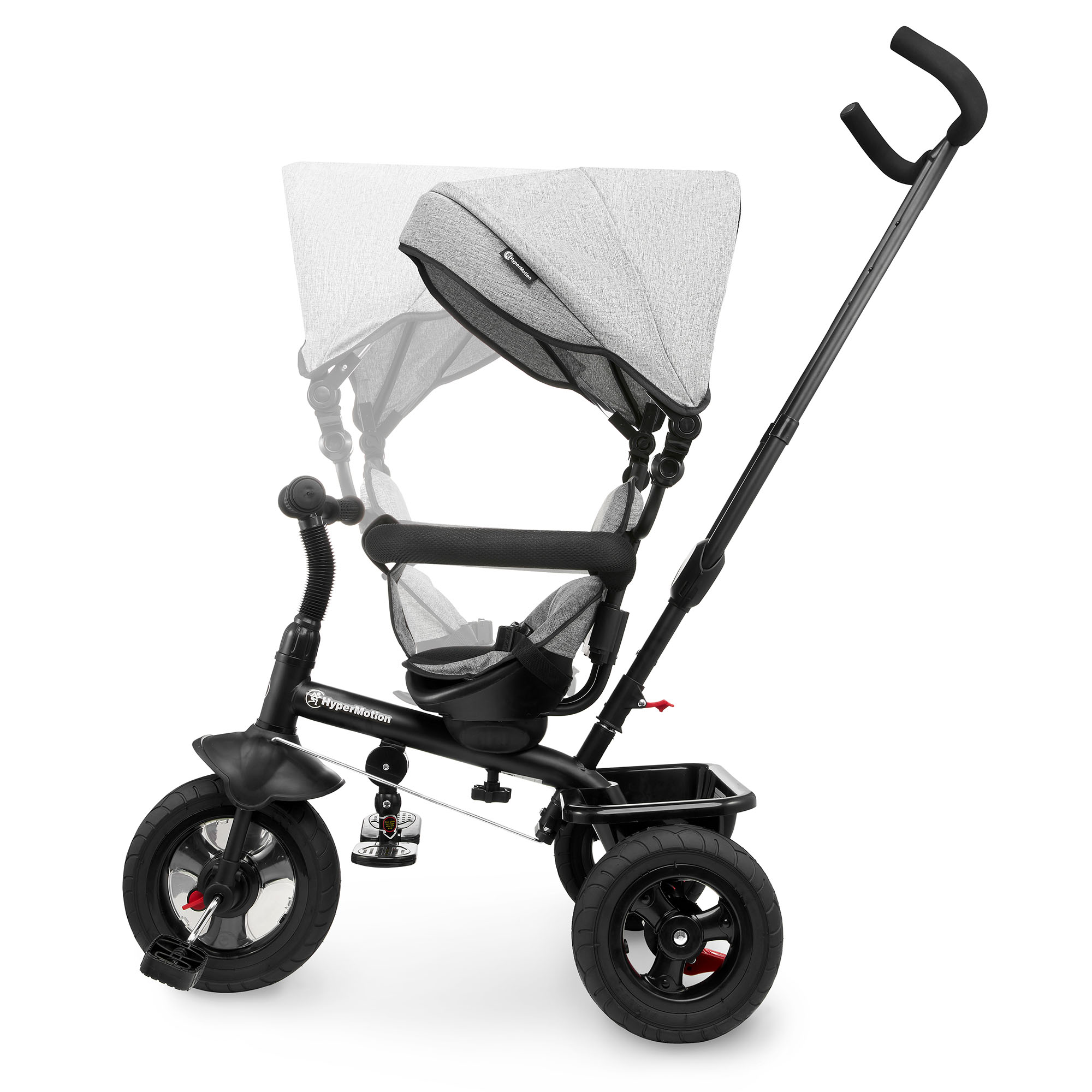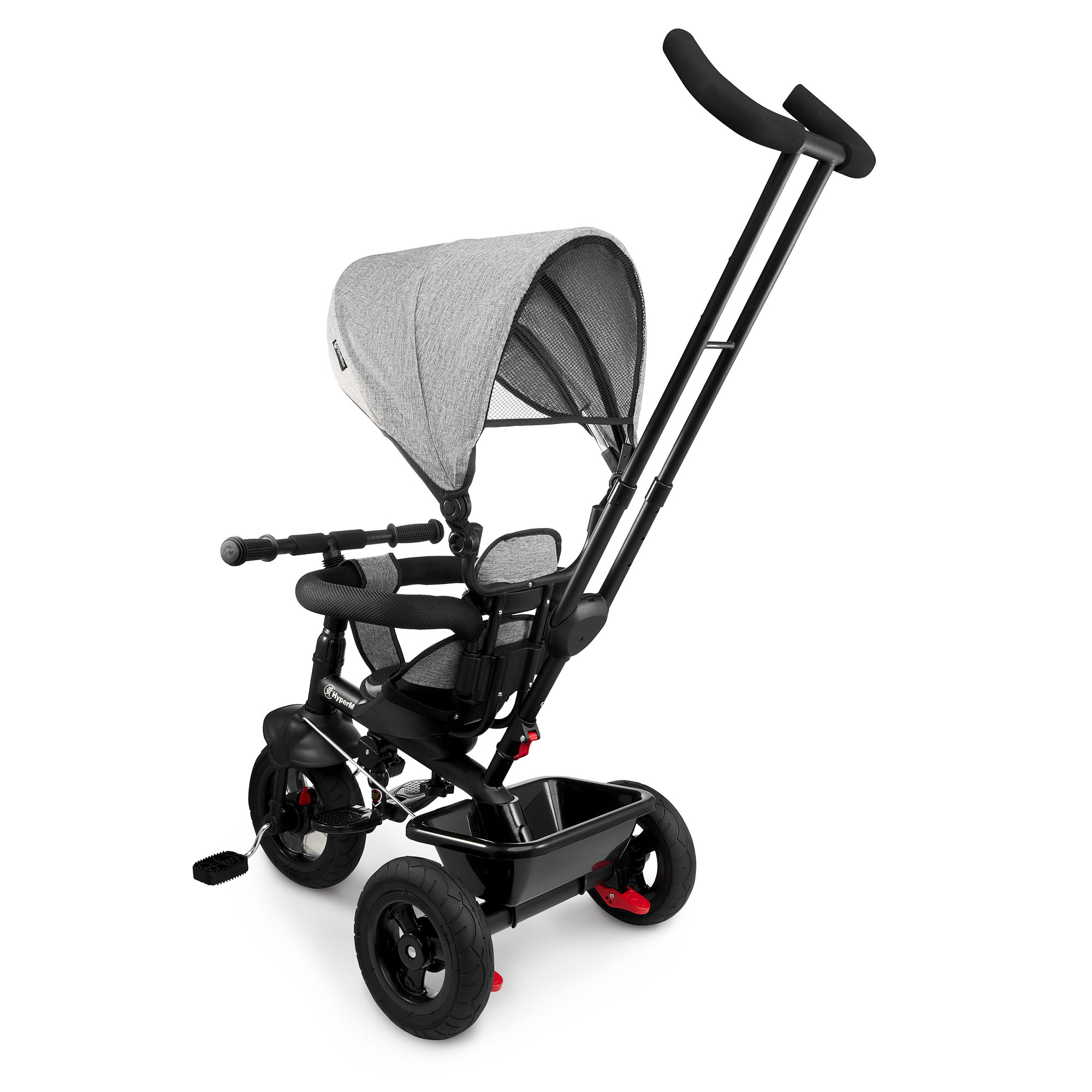 Triciclo para crianças de 1 a 4 anos - TOBI FREY - cor cinza - giratório - rodas infláveis + empurrador