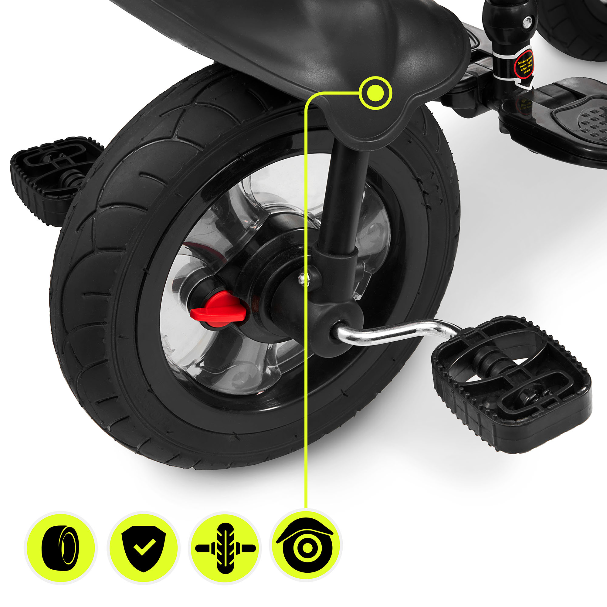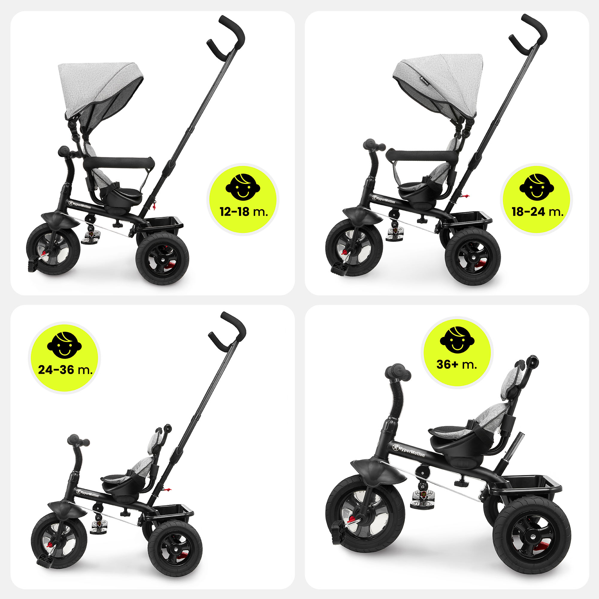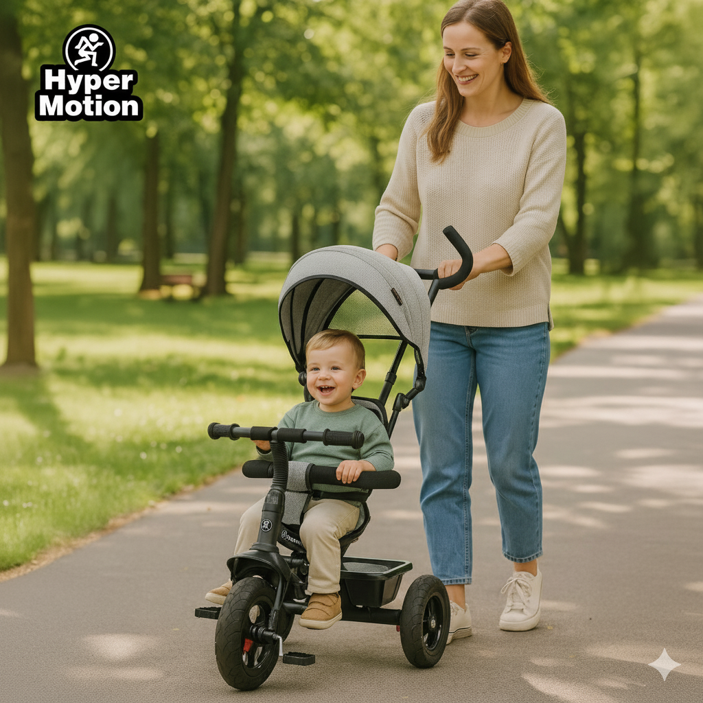 Triciclo para crianças de 1 a 4 anos - TOBI FREY - cor cinza - giratório - rodas infláveis + empurrador