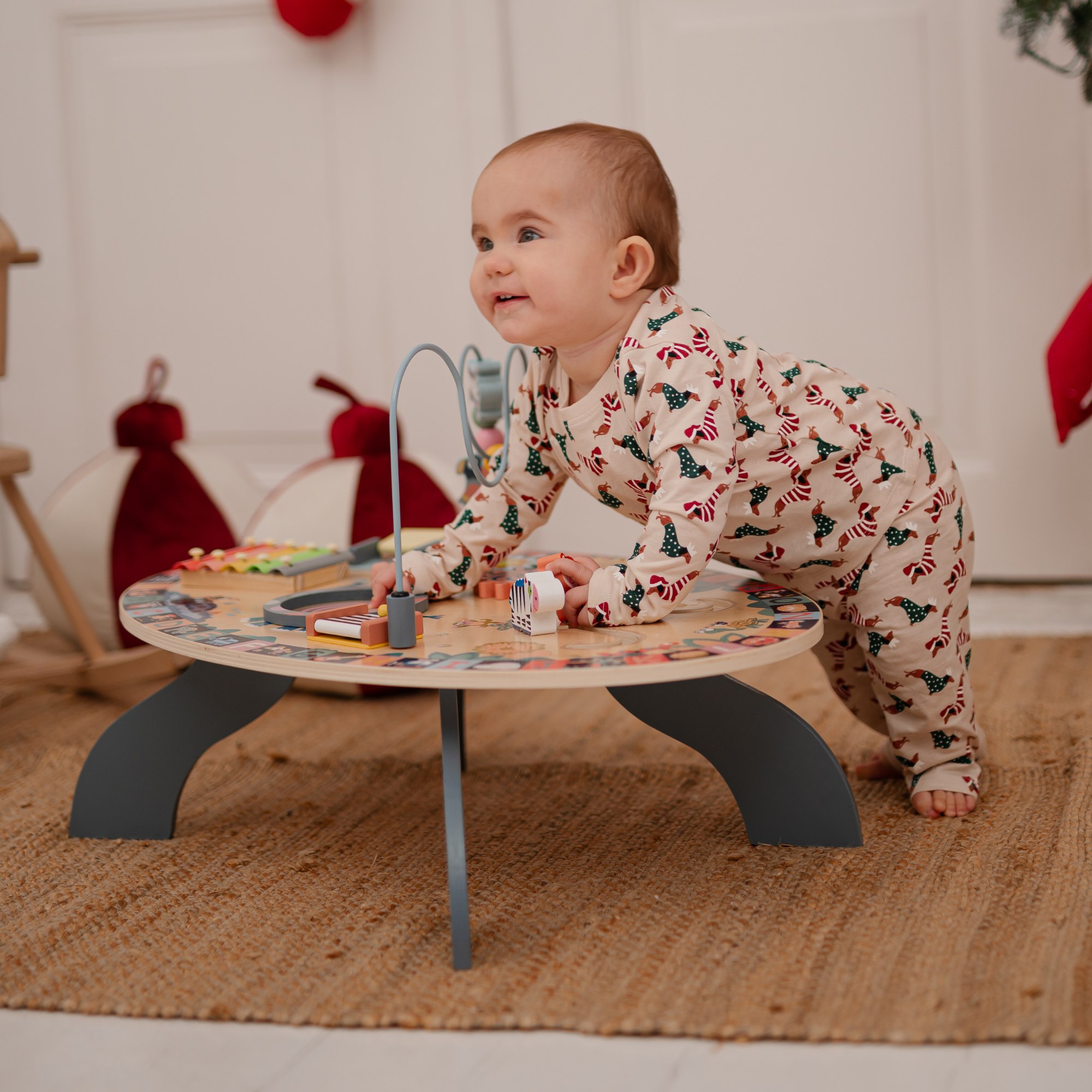 Mesa educativa de madeira 7 em 1, musical, sensorial - um rico conjunto