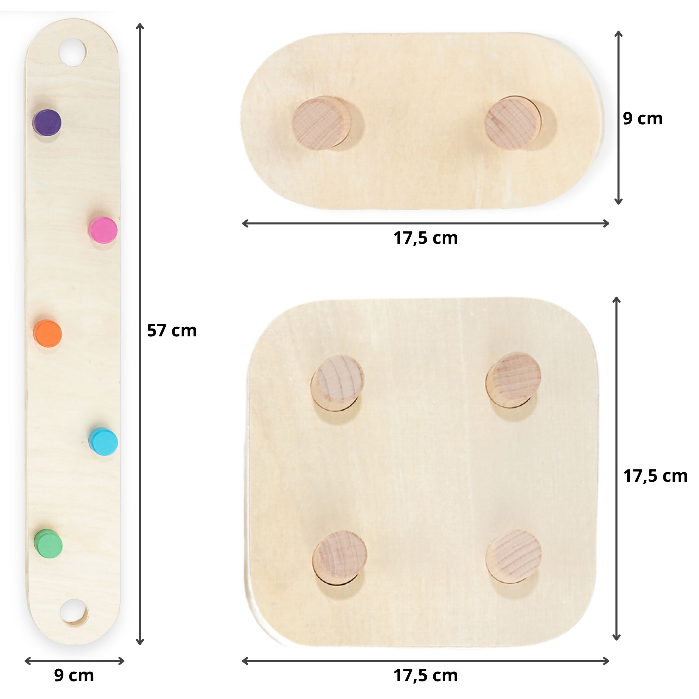 A pista de equilíbrio de madeira é um brinquedo que oferece inúmeras possibilidades de construção de percursos e muitas formas de diversão . Independentemente do quarto em que se encontre, este produto irá transformá-lo num verdadeiro parque infantil , proporcionando às crianças muita alegria e momentos inesquecíveis. Divirta-se, pratique o equilíbrio e desenvolva as habilidades motoras do seu pequeno com esta incrível pista de equilíbrio.