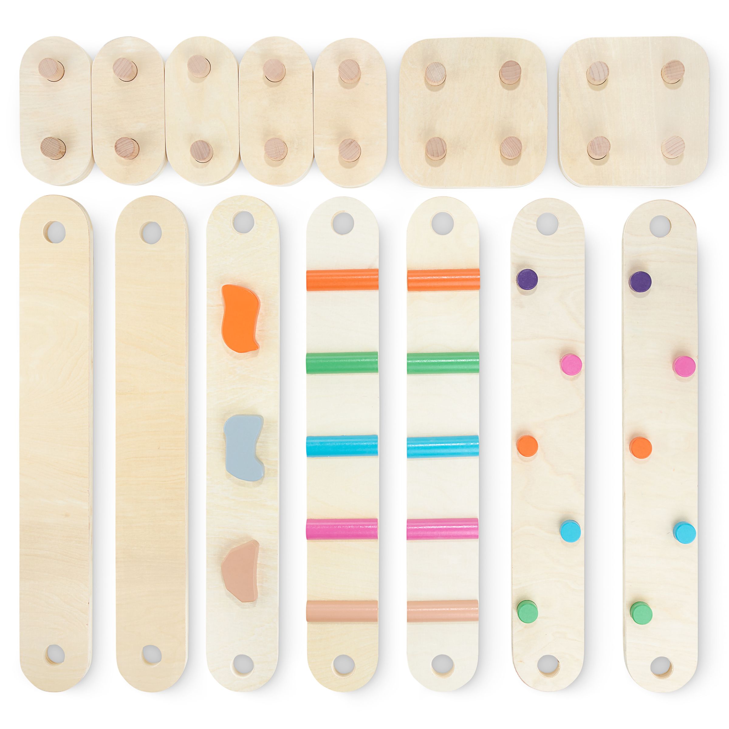 Pista de equilíbrio sensorial em madeira – 14 elementos